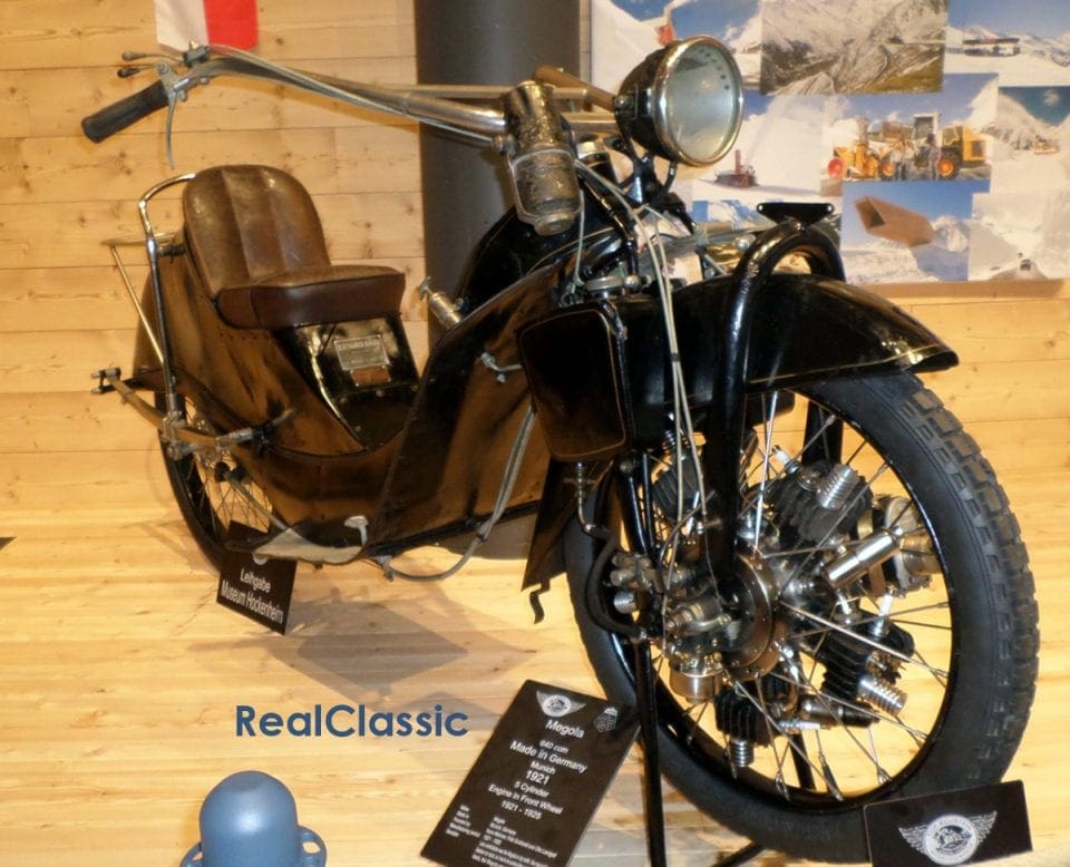 There were just so many wonderful machines. I could mention all of them but I’ll restrict myself to a few more unusual ones like the 1905 Laurin and Klement with a super little V-twin inlet over exhaust engine mounted in what was basically a large pedal cycle frame. A Megola with a five cylinder radial engine mounted within the front wheel. Apparently it does not have clutch or gears, difficult to use in town but on the track it was in its element. For Frank W’s benefit, there was even a very tidy Norton rotary.