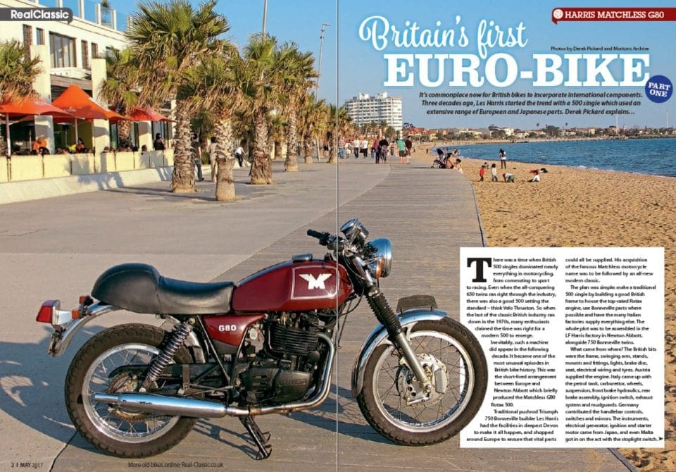These days it’s normal for British-built bikes to incorporate international components. In 1987, Les Harris started the trend with a 500 single that came equipped with all kinds of Continental kit… including an Austrian engine