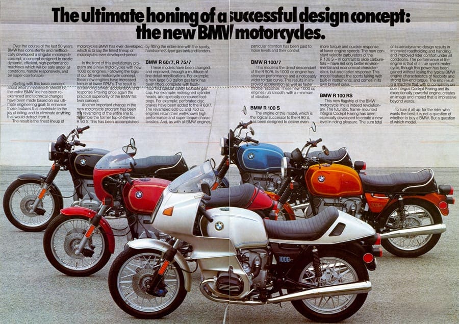 The /7 Series began in 1976, initially with bikes in 600cc, 750cc and 1000cc capacities; the R75/7 became the 800cc R80/7 in 1977.