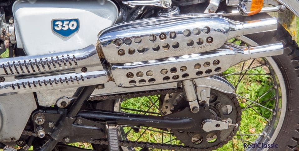 The four-stoke air-cooled ohc twin is mated to a close-ratio, five-speed, constant-mesh gearbox which fed power through an eight-plate wet clutch. While the 180-degree crank is famously robust, the top end arrangement is infamously less so, where the overhead cam surfaces can suffer. Owners are always advised to refresh the oil regularly on CL and CB models from this era. There should still be plenty of them around, as Honda built more than 600,000 of these 350s before they went out of production in 1973. In the UK, the CB roadster is by far the most common but CLs (and the more off-road inclined SLs) have been imported from the States of late.