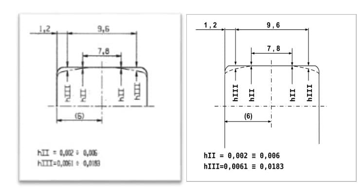 This is the profile of a roller from a standard bearing of the day with no partial crowning and a chamfer of less than 1mm in length. The overall roller length is 12mm. It looks as if Norton experimented with this higher capacity standard roller bearing to replace the R&M special variant which would almost certainly have cost more to produce and purchase than the off-the-shelf FAG bearing. The R&M 6/MRJA30 bearing has a dynamic load rating of 36,000N (1972 data) versus 51,000N for the FAG NJ306E (1973 data).
