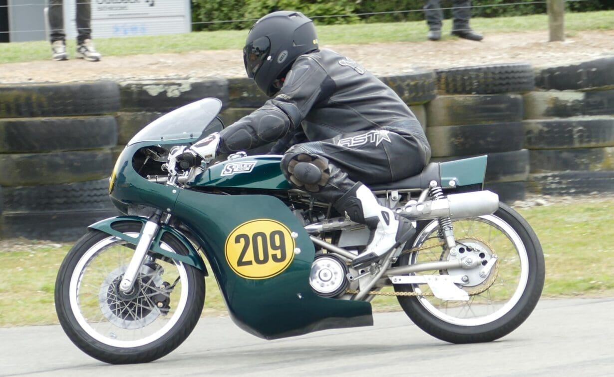 The F4 Bucket class is a development class designed to let young riders learn racing, using small two- and four-stroke engines. The race attracted 18 entries, with the Suzuki FXR150 (a 20bhp 4v dohc single) being by far the most popular. Logan Jackson on his Suzonda took four first places and a second, and Jeff Cameron on his Yamaha took four seconds and a first. Local lad Chris Sutcliffe on his Honda NSR150P blitzed the Development class with five straight wins.