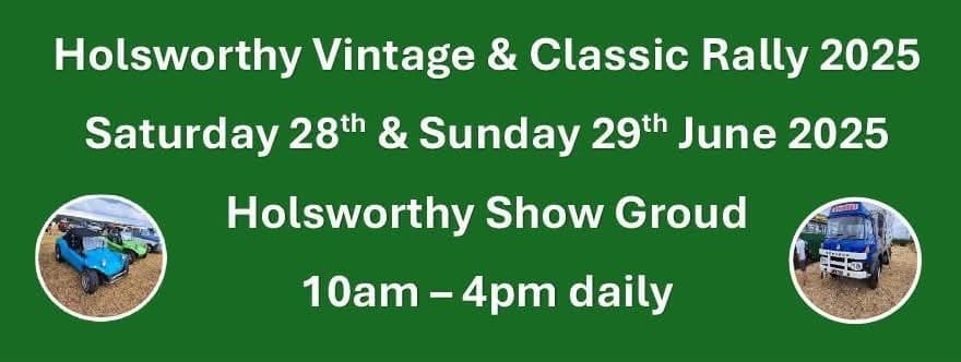 >HOLSWORTHY VINTAGE RALLY returns to the showground, EX22 6JP. Opens 10am to 4pm, stacks of vintage vehicles, stationary engines, dog show, arena events, etc.