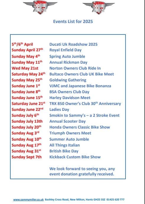 Diary dates: updated 4 May 2025. You’ll find everything here from old bike autojumbles to vintage motorcycles rides, including club runs, local shows and enormous events…